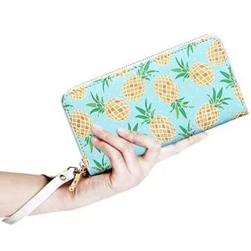 KUKOO Women’s Printed Zip Around Wallet - Luxury PU Leather Pineapple Design