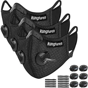 Show more Introducing the Kungfuren 3 Sets Sports Cycling Masks, your ultimate companion for outdoor activities! Engineered with comfort and performance in mind, these cycling masks are equipped with innovative features designed for those who lead an active lifestyle. With 6 advanced breathing valves and 12 soft foam padding pieces, they provide unmatched comfort and functionality during running, cycling, or other sports. The breathable neoprene construction allows for easy ventilation and prevents overheating, ensuring that you can push yourself to the limit without compromising your well-being.