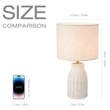 Show moreIlluminate your space with the stunning KUNJOULAM Rattan Table Lamp, a perfect blend of modern design and natural elements. Made from high-quality bamboo and metal, each lamp is meticulously handcrafted, ensuring that no two pieces are alike. The unique wicker design not only catches the eye but also adds a touch of elegance and artistry to any room. Standing at 19.68 inches high with a stunning diameter of 5.51 inches, this lamp makes a beautiful statement as a bedside lamp, desk lamp, or decorative accent piece.