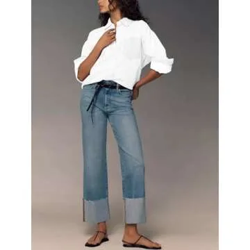 Show moreIntroducing the ultimate blend of comfort and style - these wide-leg high-waisted jeans crafted for modern women who prioritize both fashion and functionality. Made from a stretchy, durable, and breathable fabric, these jeans promise unparalleled comfort, making them a must-have addition to any wardrobe. The five-pocket styling allows for practicality while the button closure and zip fly provide an effortless fit.