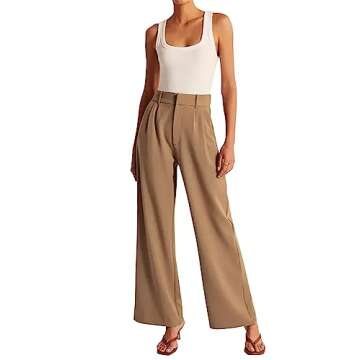 KUNMI Women's Wide Leg Pants Work Business Casual Loose High Waisted Dress Palazzo Flowy Trousers Khaki