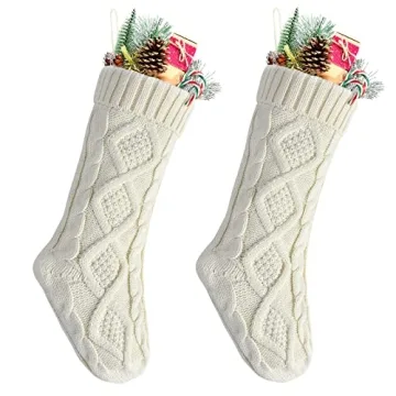 Kunyida Pack 2, 18" Unique Ivory White Knit Christmas Stockings Style2