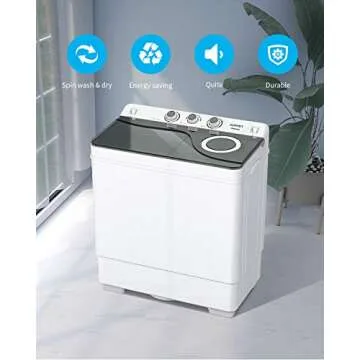 KUPPET Compact Twin Tub Portable Mini Washing Machine 26lbs Capacity, Washer(18lbs)&Spiner(8lbs)/Built-in Drain Pump/Semi-Automatic (White&Gray)