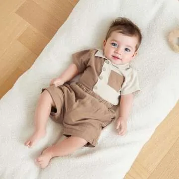 Kupretty Toddler Baby Boy Summer Clothes Color Block Short Sleeve Button Down Shirt + Solid Shorts Clothing Set (A Khaki, 3-4 Years)