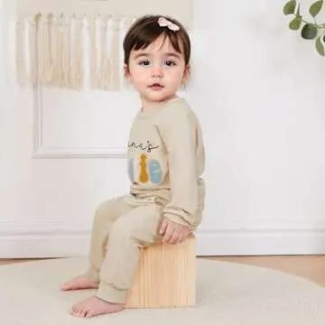 Kupretty Toddler Baby Girl Fall Winter Clothes Embroidered Letter Graphic Crewneck Sweatshirt + Joggers Pants Outfits Set (Beige, 18-24 Months)