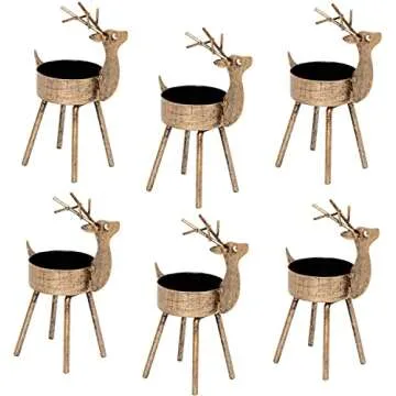 Show moreIntroducing our delightful set of 6 metal reindeer tealight candle holders, designed to illuminate your holiday season with charm and warmth. Each holder is crafted from durable metal, ensuring they are not only beautiful but long-lasting. The attractive reindeer design adds a whimsical touch to any decor, making them perfect for creating a strong festive atmosphere. Measuring at 2.9 inches wide and 4.3 inches tall, with a spot diameter of 1.8 inches, these candle holders are ideal for both tealight candles and flameless LED tea lights.