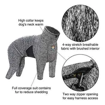 Kurgo Dog Onesie Body Warmer | Bodysuit for Dogs | Recovery Suit | Pet Pajamas | Reduce Anxiety | Contains Shedding | Leash Opening | Reflective | Stowe Base Layer | Heather Black/Grey (Small)