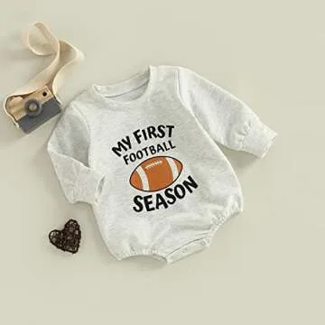 Kuriozud Newborn Baby Boy Girl Football Outfit My First Football Season Sweatshirt Romper Long Sleeve Shirt Tops Fall Winter Clothes (My First Football Season, 0-3 Months)