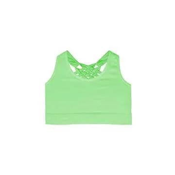 Kurve Girl’s Sleeveless Tank Top - Seamless Stretchy Strappy Back Crop Racerback Bra - Shirt Sports Bra for Kids, UPF 50+ Made in USA, Neon Green-83, Age 9-14