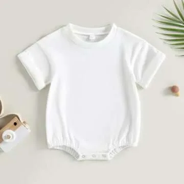 Show more Introducing the Kutersbabi Unisex Baby Boy Girl Clothes Infant Summer Oversized Bubble Romper, the perfect blend of comfort and style for your little one! Designed for ages 0-6 months, this adorable romper features a classic crew neck and short sleeves, making it ideal for warm summer days. Crafted from a soft cotton blend, it keeps your baby's delicate skin comfortable while ensuring they look adorable. Whether it's a family gathering or casual wear, this oversized bubble romper is versatile enough to create various outfits that can be dressed up or down. Additionally, its solid color allows for easy coordination with other baby accessories.