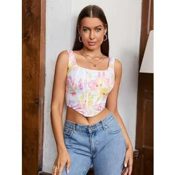 Show moreDiscover the ultimate blend of comfort and style with the KUTUMAI Women's Summer Floral Corset Crop Top. This trendy going-out top features an open back and sleeveless design, perfect for showcasing your unique fashion sense. Made with a premium blend of 95% polyester and 5% spandex, this top conforms beautifully to your body while maintaining a soft, skin-friendly feel. The twelve flexible plastic bone supports are expertly designed to accentuate your curves, creating a stunning hourglass silhouette that’s perfect for any occasion.
