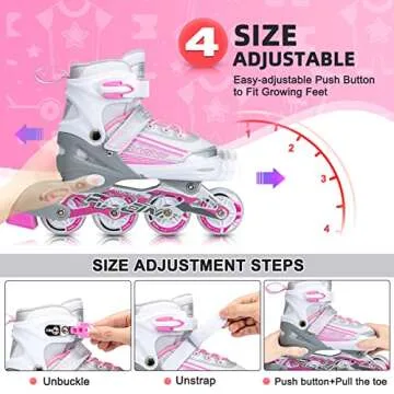 The high-quality aluminum frame and durable polyurethane wheels enhance the skating experience while providing stability and comfort. The ABEC-7 bearings ensure a smooth ride, making them suitable for both indoor and outdoor conditions. Parents can rest easy knowing these skates are adjustable for their child's growing feet, eliminating the worry of needing to replace skates every year. Plus, they're easy for kids to put on and take off, encouraging independence!