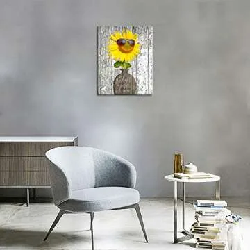 Transform your living space with the charming KuyiArt Cute Flower Wall Art, designed specifically for those who appreciate rustic elegance and delightful aesthetics. This beautiful artwork features a vibrant sunflower adorned with glasses, radiating cheerfulness that brightens any room, especially your bathroom. Crafted on high-quality canvas, the print showcases exquisite details, ensuring that every petal and cheeky frame draws admiration. Its country-themed design...