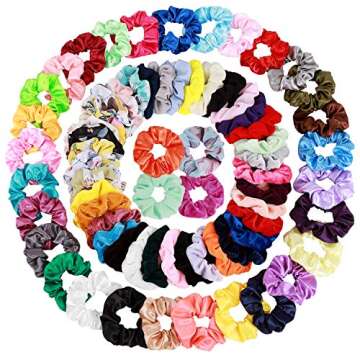 KVANT 70 Pack Hair Scrunchies Hair Ties Elastic Hair Bands Scrunchy Hair Accessories for Women or Girls - 10 Solid Colored Chiffon, 10 Flowered Chiffon, 20 Solid Colored Velvet, 30 Solid Colored Satin