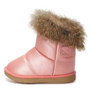 These boots not only exude charm in their delightful pink hue, but they also boast a range of features that elevate them above typical winter footwear. You'll appreciate the anti-collision design that protects tiny toes during playtime, along with the skid-resistant soles that offer grip for safe movement on slippery surfaces. The breathable suede fabric allows for airflow, while keeping little feet warm—ideal for those extended outdoor adventures.
