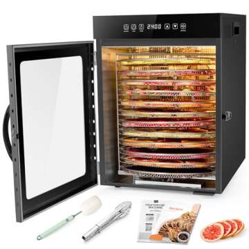 Kwasyo Food Dehydrator Machine, ALL Stainless Steel Dehydrator, Dual fan 360° Efficient Drying, 24H Adjustable Timer & 68℉ to 194℉
