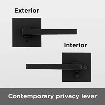 Kwikset 91550-029 Halifax Door Handle Lever with Modern Contemporary Slim Square Design for Home Bedroom or Bathroom Privacy in Iron Black