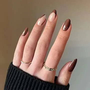 KXAMELIE Press on Nails Short Brown Stripes Full Cover Nude Glue on Nails Fake Nails with Nails Glue Glossy Oval False Nails Cute Nails Full Nail Press Ons Finger Manicure Acrylic Nails press on 24 PCS
