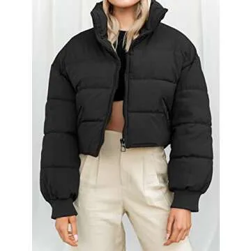 KYL Fashion-Forward Women's Winter Cropped Puffer Jacket, Medium