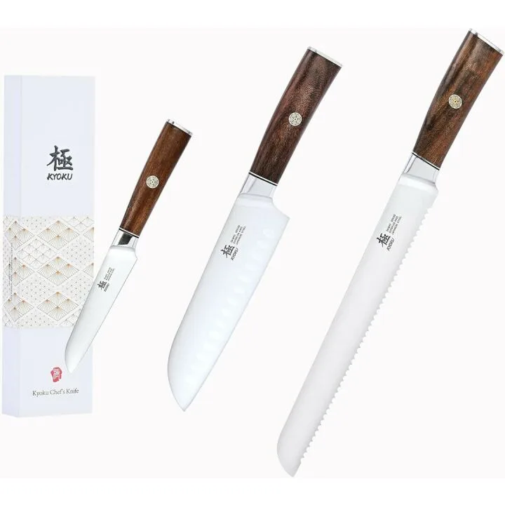 KYOKU 3-Piece Knife Set: Paring, Santoku & Bread Knife
