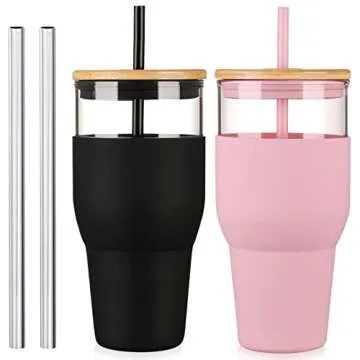 Show more Experience the perfect blend of style and functionality with the kytffu 32oz Glass Tumbler. Crafted from premium borosilicate glass, this tumbler is notably stronger and more durable than standard glass, designed to withstand temperature extremes ranging from -20℃ to 120℃ (-4℉ to 248℉). Whether you crave hot coffee or icy smoothies, this tumbler is equipped to handle it all. Each component is food-grade, BPA-free, odor-free, and pollution-free, ensuring a safe and enjoyable drinking experience. Ideal for those who lead a healthy lifestyle, this tumbler is a must-have accessory for both home and on the go.