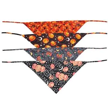 Show moreUnleash your pet's spooky spirit this Halloween with the KZHAREEN 4 PCS Halloween Dog Bandana Set. This fabulous collection features four adorable, reversible bandanas adorned with festive pumpkin prints that will not only make your pet stand out but also create unforgettable moments during the season of ghouls and ghosts. Made from 100% cotton, these bandanas offer comfort and breathability, making them perfect for all pet sizes, particularly medium to extra-large breeds like Labradors, Boxers, Dobermans, and German Shepherds. Designed with thoughtful craftsmanship, you’ll find that all seams are expertly finished inside to prevent any irritation, ensuring a delightful wearing experience for your furry friend.