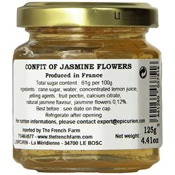 Show moreDiscover a delightful taste of France with the exquisite L'Epicurien Confit of Jasmine Flowers. Imported from the beautiful Languedoc Roussillon region, this 4.4oz jar is a true culinary treasure, crafted with passion and tradition. Each confit is made using small batch, artisanal production methods to ensure that you savor the delicate, fragrant flavor of the finest jasmine flowers. Whether you're looking to elevate your breakfast, enhance your afternoon tea, or add a charming touch to your snack, this confit is the perfect choice. Its unique essence lingers on the palate, offering an unforgettable experience that will transport you to the idyllic landscapes of southern France.