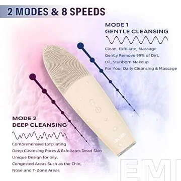Show more Introducing the L&L SKIN EMI Face Cleansing Device, your new best friend for achieving radiant, clean skin! Designed with 0.6 mm longer and softer touch points, this ultra-hygienic silicone brush head is perfect for a luxurious cleanse. Its unique 30-degree bevel and 12-rounded corrugated design enables a thorough, effective facial cleanse, ensuring every inch of your skin is pampered. Offering a combination of gentle exfoliation and facial massage, this device provides a deep cleanse without any damage to your skin.