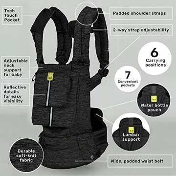 LÍLLÉbaby Pursuit Pro Ergonomic 6-in-1 Baby Carrier Newborn to Toddler - with Lumbar Support - for Children 7-45 Pounds - 360 Degree Baby Wearing - Inward and Outward Facing - Heathered Onyx