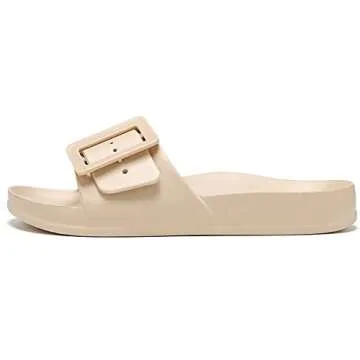 Show more L LOUIT Cloud Slides are the perfect blend of style and comfort, designed specifically for women who seek both functionality and elegance in their footwear. Made from a durable EVA material, these slides feature a unique arch support pillow that effortlessly molds to your feet, offering superior comfort whether you’re lounging at home or stepping out for a casual outing. The trendy oversized buckle adds a flash of modern style while ensuring a customizable fit. Perfect for summer days at the beach, poolside relaxation, or a quick stroll with your pets, these slides combine fashion and practicality in one delightful package.