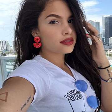 L&N Rainbery Bohemian Handmade Drop Earrings Fashion Beaded Raffia Palm Earrings for Women Tiered Dangle Statement Earrings (2 Layers Yellow)