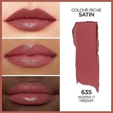 L’Oréal Paris Colour Riche Satin Lipstick for Moisturized Lips,Lip Makeup with Argan Oil and Vitamin E,Worth It Medium,0.13 Oz