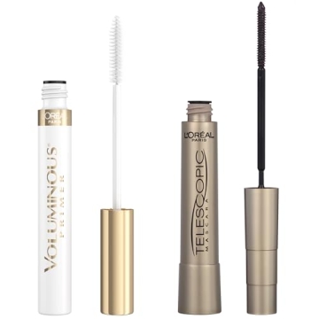 Show moreDiscover your ultimate lash transformation with the L’Oréal Paris Telescopic Original Mascara and Voluminous Original Primer Makeup Bundle. This dynamic duo includes a pack of two essential tools designed to elevate your lash game to new heights. The Soft White Mascara Primer not only primes your lashes for a fantastic foundation but also boosts volume and length, ensuring that your lashes are not just beautiful but also healthier. When paired with the Blackest Black Telescopic Original Mascara, you’ll experience extreme lengthening and separation that defies the conventions of traditional mascara. Transform your everyday makeup routine with these innovative products that promise voluminous and intense-looking lashes with minimal effort.