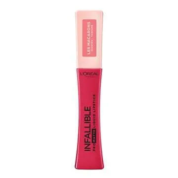 Show more Introducing the L’Oreal Paris Infallible Pro Matte Les Macarons Scented Liquid Lipstick, a luscious addition to your makeup collection that embodies vibrant color and irresistible fragrance. This liquid lipstick offers all-day, full coverage matte wear, ensuring your lips look flawless from morning to night. Designed with a sophisticated formula, each shade is rich in pigment, delivering an intense color payoff that is never sheer. The delightful macaron aroma combines notes of almond, vanilla, and cream, making every application a delightful experience.