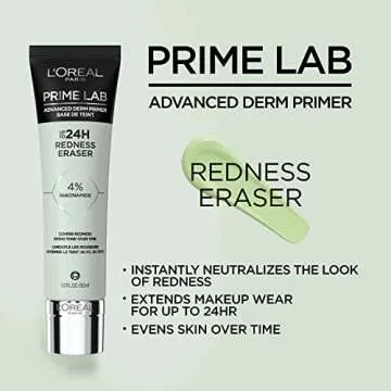 The L'Oreal Paris Prime Lab Up to 24H Redness Eraser is not just a primer; it's a skincare revelation that offers emotional benefits as well. Imagine stepping out your door with the confidence of knowing that your skin looks flawless and feels cared for. This product enables you to enjoy vibrant, perfected skin while still nourishing it, turning your makeup routine into an indulgent experience. Feel empowered, beautiful, and ready to conquer the world as you embrace the effortless beauty this primer enhances.