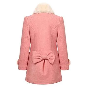 L SERVER Girls Peacoat,Girls Dress Coat, Peacoat with Woolen Collar,Fashion Warm Blended Winter Coat Princess Bow Jacket,Pink 150