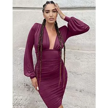 Show moreIntroducing the L'VOW Women's Sexy Deep V Neck Long Sleeve Ruched Bodycon Shoulder Padded Club Midi Dress – a sensational piece designed for the modern woman who appreciates elegance and comfort. Crafted from high-quality milkfiber, this stunning dress features a double layer fabric that not only feels luxuriously soft against the skin but also offers exceptional breathability and moisture conductivity. With a warmth that rivals cashmere, the L'VOW dress ensures you stay beautifully cozy while looking chic. The deep V-neck design and plunging neckline add an alluring touch, while the sophisticated shoulder padding provides structure and enhances the silhouette, making it perfect for a variety of occasions.
