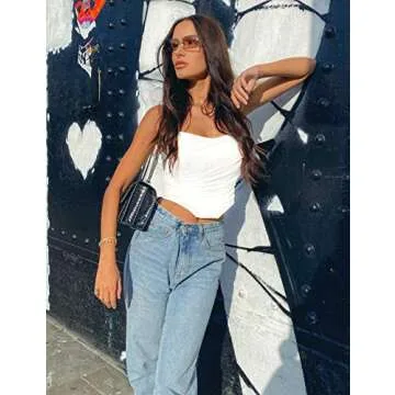 L'VOW Women's Sexy Strapless Mesh Bustiers Overbust Open Back Boned Corset Crop Top (White, Large)