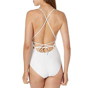 La Blanca Women's Rouched Body Lingerie Mio One Piece Swimsuit, White/Linea Costa, 10