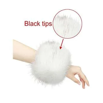 LA CARRIE Women's Leopard Print Faux Fur Wrist Cuffs,Winter Fox Furry Bands Arm Warmer (White)