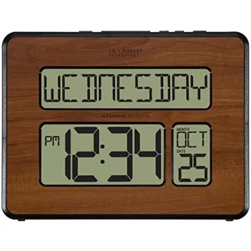 La Crosse Technology Atomic Large Full Digital Calendar Clock - Walnut