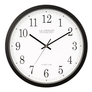 Show moreIntroducing the exquisite La Crosse Technology Wall Clock, a perfect blend of functionality and elegance tailored to meet the needs of modern lifestyles. Measuring a substantial 14 inches in diameter, this clock is more than just a timekeeper—it's a statement piece designed to enhance any room's decor. Its smooth black plastic case houses a striking white dial adorned with bold black Arabic numbers, ensuring visibility from any angle, making it ideal for large spaces or cozy corners alike. The clock's atomic capabilities guarantee precise timekeeping without any manual intervention, thus liberating you from the hassle of seasonal adjustments.
