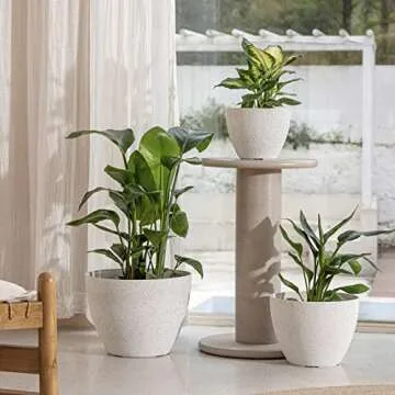 LA JOLIE MUSE 14.2/11.3/8.6 Inch Planters,Indoor/Outdoor White Planters Set of 3,Plant Container with Drain Holes,Flower Pots for Patio and Deck