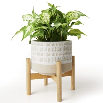 What truly sets this planter apart is its high-quality craftsmanship. Made from premium clay and finished with a stunning sand glaze, every piece is a handcrafted art creation, ensuring that each planter is unique and adds a personal touch to your décor. The accompanying wood stand is not just a practical addition but also an element of style, featuring interlocking dowel construction that keeps your planter elevated while enhancing its overall aesthetic appeal.