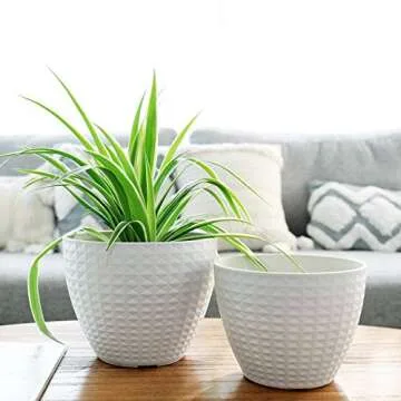 LA JOLIE MUSE Flower Pots Outdoor Indoor, Garden Planters, Modern Chic Planters with White Geometric Mosaic Texture Patterns, Set of 2, Matte White (8.6 + 7.5 Inch)