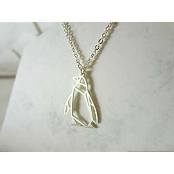 Show moreIntroducing the exquisite La Menagerie Penguin Silver Origami Necklace, a delicate and charming accessory that embodies elegance and playfulness. This stunning piece features a meticulously crafted origami penguin design, made from high-quality stainless steel that is plated with 925 sterling silver. The intricate laser-cut details ensure a modern and chic look, making it the perfect addition to any jewelry collection. Ideal for animal lovers and fashion enthusiasts alike, this necklace is sure to turn heads and spark conversations.