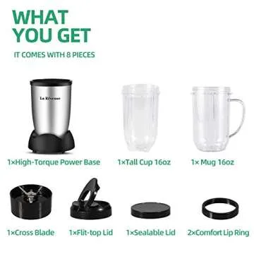 La Reveuse Personal Size Blender 250 Watts Power for Shakes Smoothies Seasonings Sauces with 2 Pieces 16 oz Mug -Silver