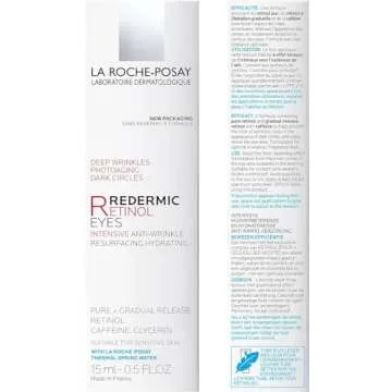 Show moreRediscover youthful beauty with the La Roche-Posay Redermic R Eyes Retinol Eye Cream. This remarkable anti-aging eye cream offers an effective solution in the fight against wrinkles, dark circles, and crow's feet. Infused with potent ingredients including pure retinol and caffeine, this cream works in harmony with your skin, helping you unveil a brighter, firmer eye area. The innovative, weightless formula absorbs quickly, making it a seamless addition to your skincare regimen.
