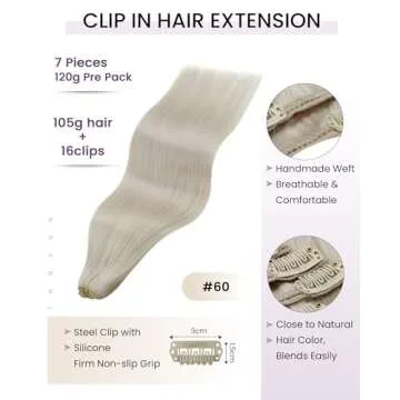 Show moreTransform your hairstyle effortlessly with the LaaVoo Human Hair Clip in Extensions. Designed for those seeking to enhance their natural beauty, these 7-piece clip-in extensions come in stunning 24-inch lengths and 140 grams of premium, real human hair. Unlike synthetic alternatives, LaaVoo extensions blend seamlessly with your own hair, delivering a remarkably natural look that feels just like your own locks! Available in a range of colors, including luxurious platinum blonde, these extensions provide the perfect solution for anyone wanting to add volume and length in mere minutes.