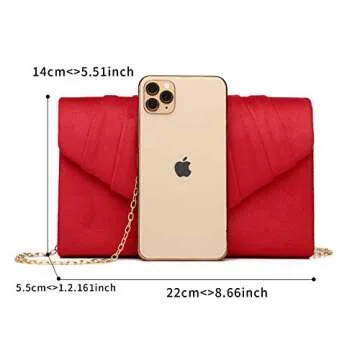 Introducing the exquisite Labair Women's Evening Handbags Pleated Suede Evening Bag in a stunning red hue – your new go-to accessory for any glamorous occasion. Crafted from high-quality faux suede, this clutch combines elegance and functionality, featuring a stylish pleated envelope design that perfectly complements your footwear and enhances your attire. With its sleek dimensions of 8.6"W x 5.3"H x 1.96"D, this purse provides ample space for all your essentials, including the iPhone 14...